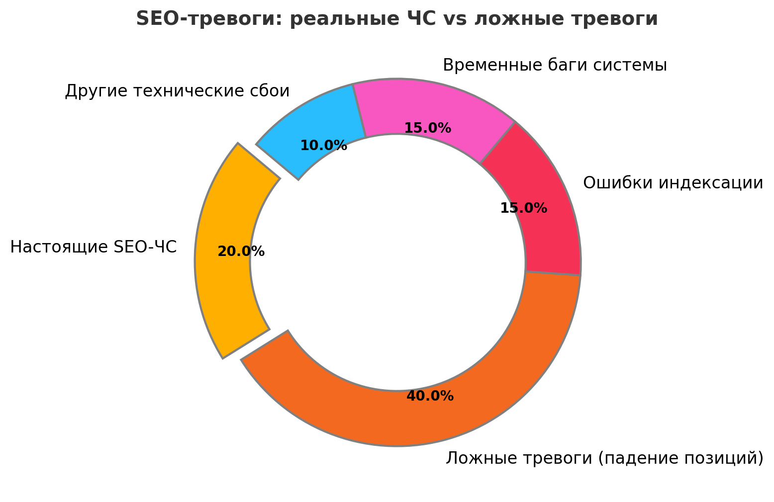 Когда проблема с SEO-продвижением требует действий, всегда полезно сперва глубже вникнуть, прежде чем реагировать, как на пожар. Не каждая ситуация требует срочных мер, и тут помогает осознанность и уверенность. Отличая настоящие ЧС от тех, что лишь кажутся таковыми, вы сможете держать проект в форме и избежать бессонных ночей без настоящей причины.