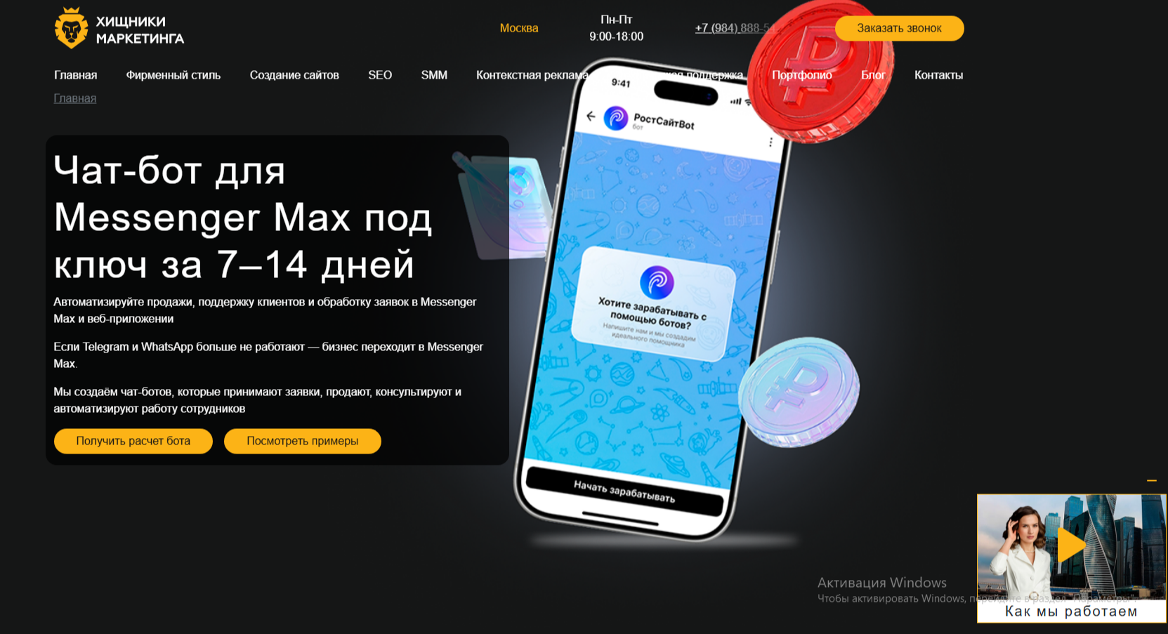 Перенос бота из Телеграм в Макс с этой студией — быстрый и качественный переход с минимальными временными затратами. «Хищники Маркетинга» предлагает создание новых ботов, плюс их интеграцию с уже существующими системами, такими как CRM и другие бизнес-решения. Ресурс известен своей быстрой реакцией и точным выполнением требований, что делает процесс переноса плавным и без потерь в функционале.Преимущества: