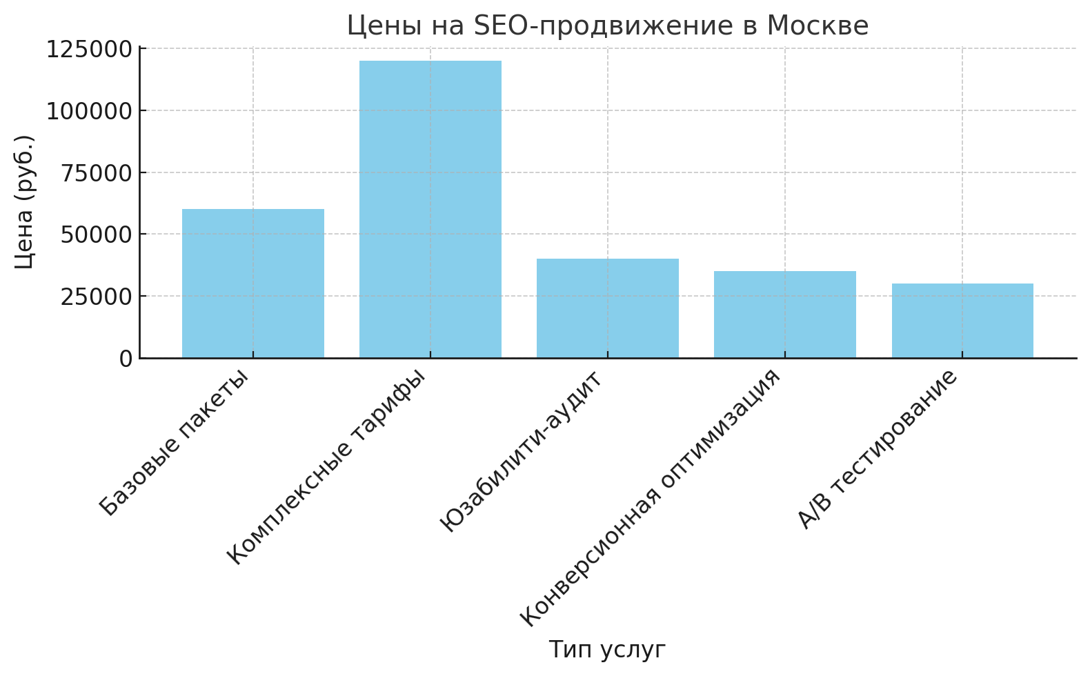 1. Базовые пакеты SEO начинаются от ₽50 000– ₽70 000 в месяц. Это включает базовые работы по внутренней и внешней оптимизации сайта.